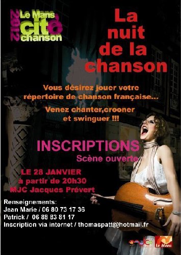 | Lieu et adresse complète | MJC Prévert Salle de l'Inventaire 97, Grande Rue 72000 LE MANS | ||